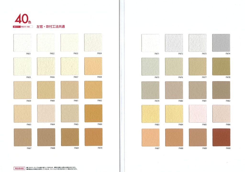 さて、先に発売しておりましたMagic Coat IN(マヂックコート インテリア)では、その「HM」パターンが標準仕様では忠実に再現できず、骨材を一回り小さくした「HMSS」にて対応しており、また同製品においては、珪藻土をベースとしていたために、フッコーのブランドのひとつでもある「色」、つまり発色性に限界がありました。